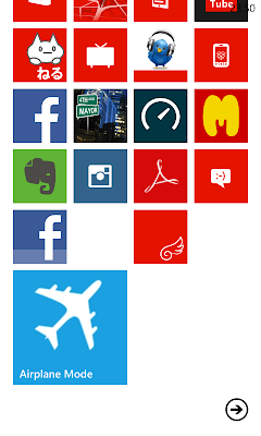 下の方にある機内モードのタイルはこのアプリで作成したものです